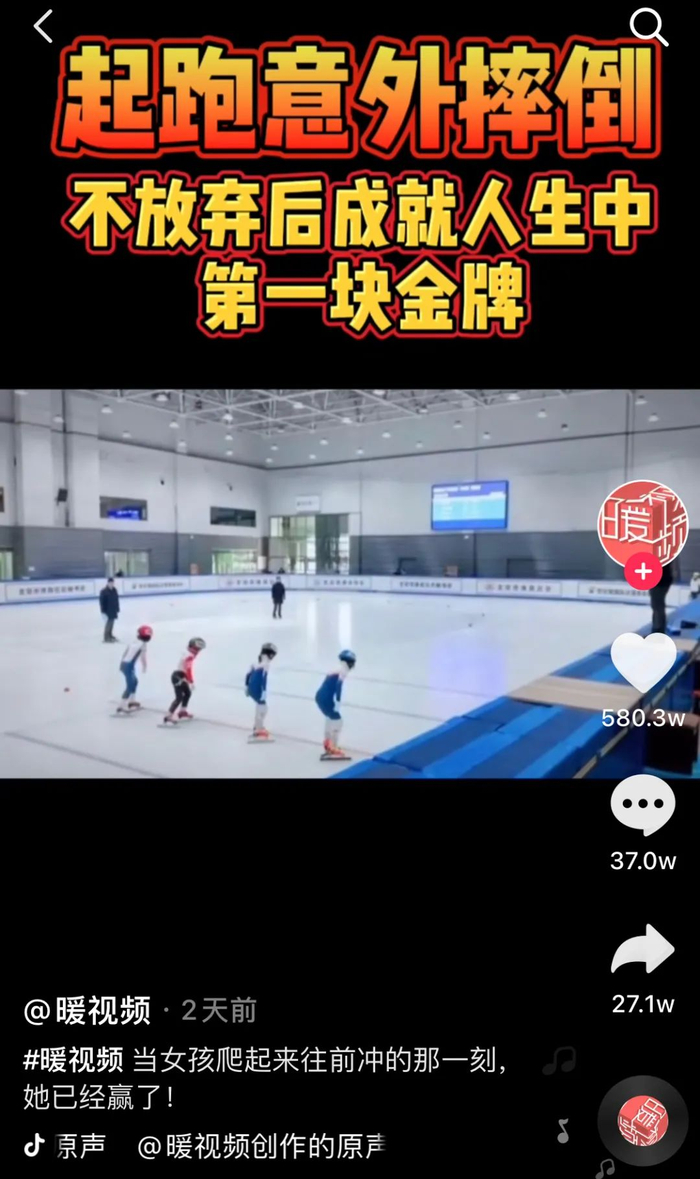 原标题:《感动500万人!8岁滑冰女孩起跑摔倒,反超夺冠!》