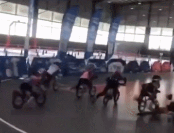 随后,工作人员把车子调整好,中途交给球球,他接过车子继续完成比赛。“摔倒后,把车扶起来发现车把卡在车座底下,我掰不回来就扔了,赶紧跑。”球球回忆道。