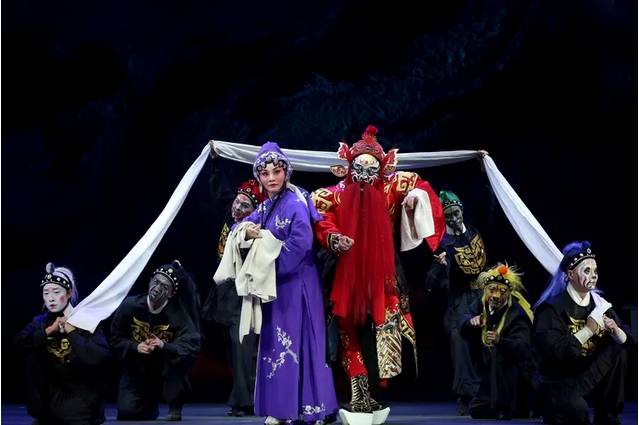 《再续红梅缘》取材于中国明代周朝俊的传奇作品《红梅记》,讲述了裴瑞卿与李慧娘、卢昭容的传奇爱情故事,被誉为“中国版人鬼情未了”。本次进京演出,由著名秦腔表演艺术家李梅领衔主演,陕西省戏曲研究院小梅花秦腔团助演,精湛的演出让现场掌声、叫好声此起彼伏,不绝于耳。