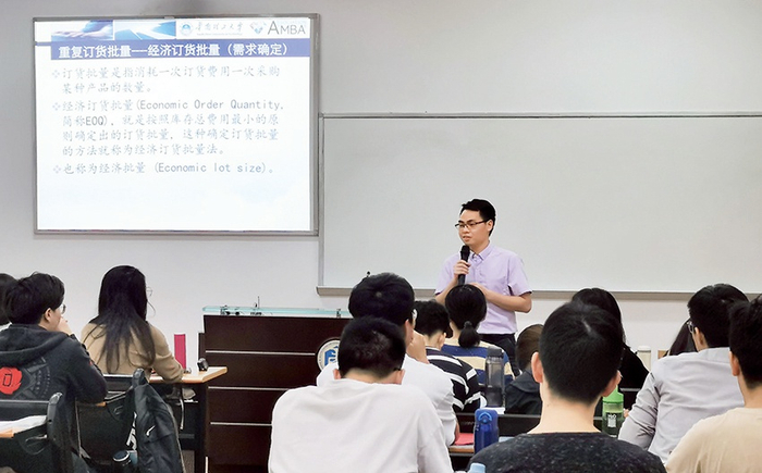 作为一名教学科研型教师,钟远光将自己的科研成果也带入课堂。他会将最新的科研成果融入教材、化为课程,让学生了解掌握最前沿的学科知识,并将在课堂所学的理论方法加以灵活应用。在给研究生教授的“库存控制模型与方法”课上,很多内容就与钟远光的研究密切相关,他将已发表的相关论文作为课程内容,并结合当前的热点研究问题教授给学生,如供应链金融如何与库存管理相联系,共享经济如何与库存管理模型相联系,帮助学生分析如何利用现有的研究方法来解决当前的热点和现实问题。“在这个过程中,一方面我可以把最新的研究成果告诉学生,另一方面学生在学习过程中会有所反馈,也能反过来促进我的科研。这种教学与科研相互促进的方式是比较理想的,国外其实也是这样,他们的课件每年都会更新,将最新的研究和知识点设计在里面,这样的教学方法很值得我们借鉴。”以科研反哺教学,以教学促进科研,钟远光通过这样的方式使自己的教学和科研水平得到双重发展。