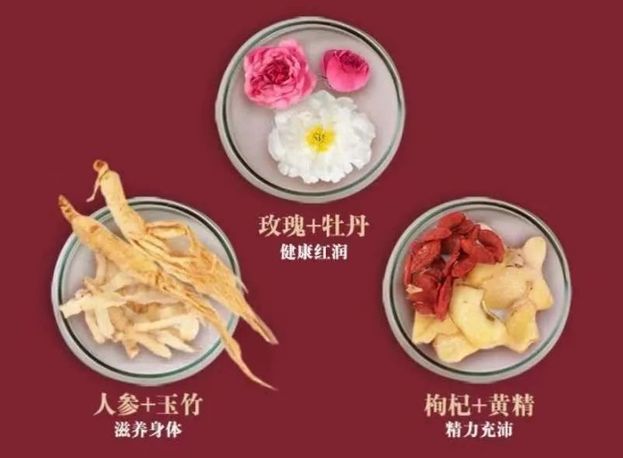 今年上市的纽崔莱汉本萃活妍饮品,根据中医经典养血补虚的方剂“枸杞丸”(二精丸),即由枸杞、黄精两味滋补肝肾、补益精血的药材,配以补气润燥的人参、玉竹,以及活血提气色的玫瑰、牡丹,通过这6味药食同源中药材,组成了一个补气、养血、活颜的新方;纽崔莱汉本萃清润饮品,参考了补气润肺健脾的传统汉方“人参百合汤”,搭配清热利咽止咳的罗汉果、雪梨和茯苓,创新了一个适合日常益气、润肺、清心的组合。