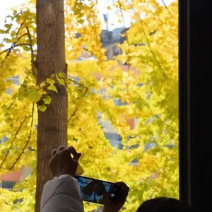 每当一阵风吹过,银杏树叶簌簌往下飘落,也成为美丽的风景。金黄的银杏叶和银杏果实掉落在路旁,也有不少飘落在停在路边的小汽车上,车主驾车离开前总要轻轻将它们扒落。
