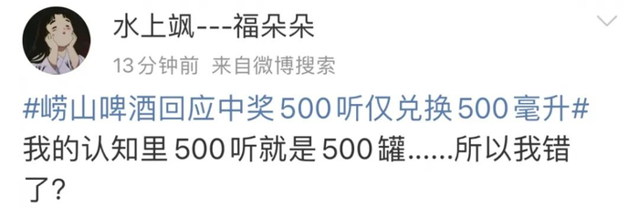 中奖500听=500毫升?啤酒厂家的解释把网友弄懵了