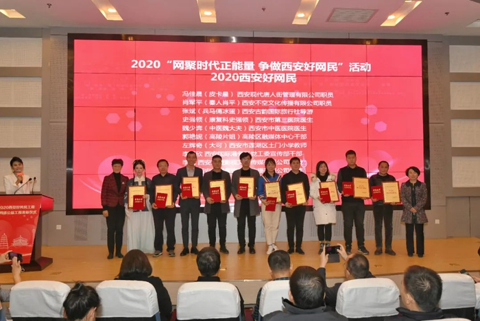 网络红人兵马俑解说员冰蛋、大唐不夜城不倒翁小姐姐皮卡晨等荣获“2020西安好网民”称号;