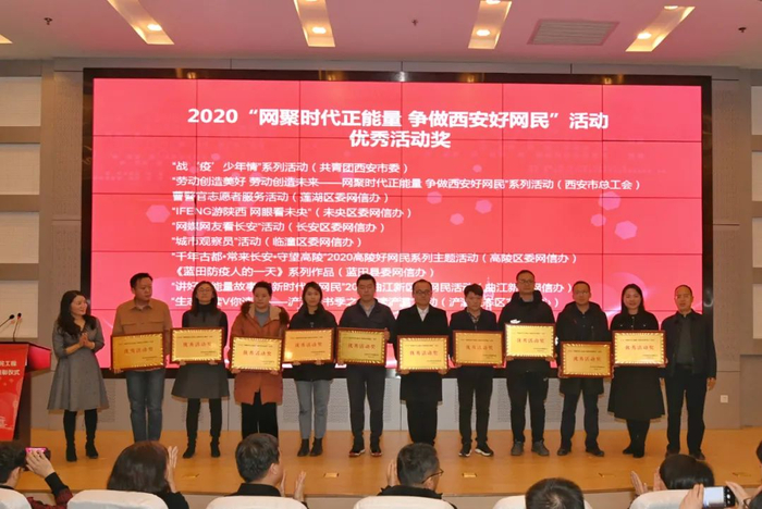 12月22日,由中共西安市委网信办主办,市网络联谊会协办的“2020西安好网民暨网络公益工程表彰仪式”在西安举行。来自全市各区县、开发区网信办、重点新闻网站、网络社会组织和互联网企业及网络名人代表等120余人参会。