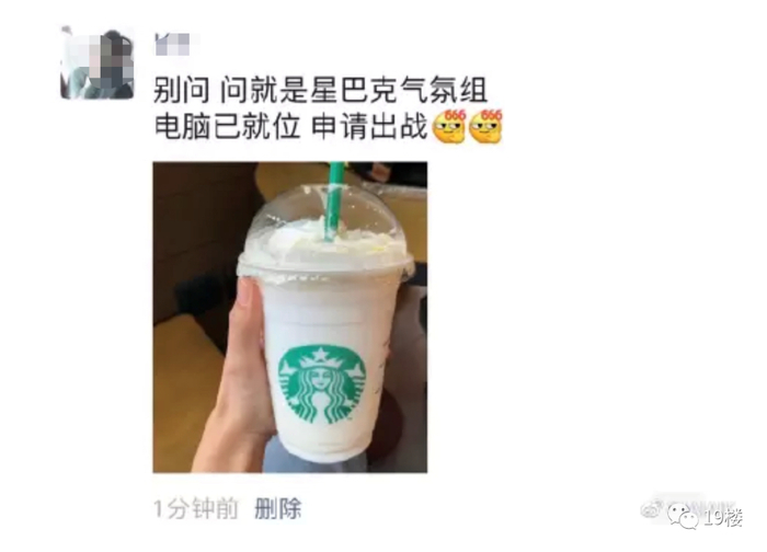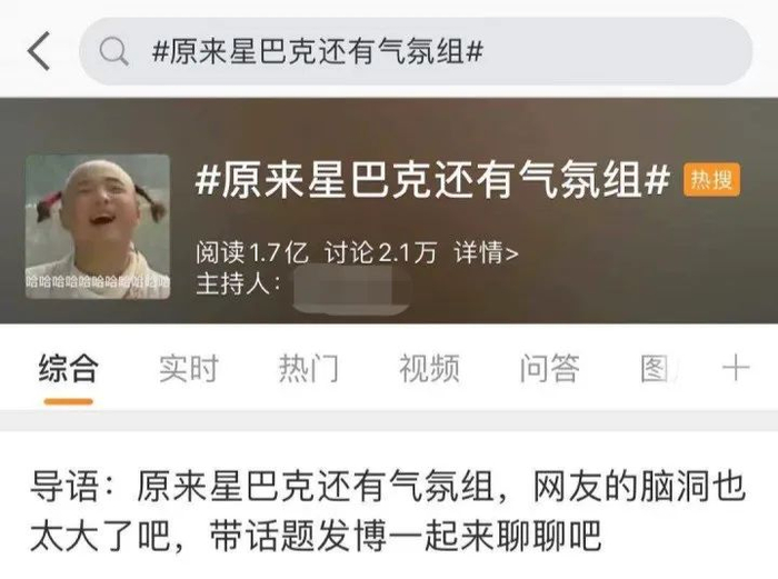 #原来星巴克还有气氛组#的话题