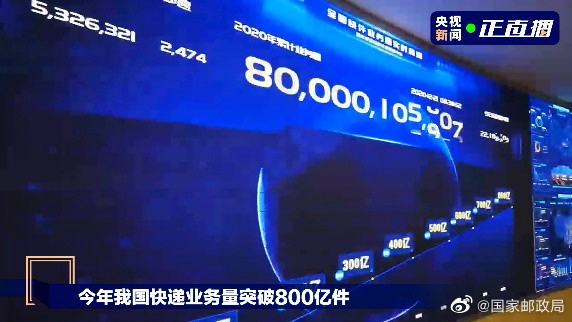 与此同时,国家邮政局邮政业安全监管信息系统实时监测数据显示,21日上午8点38分,2020年我国第800亿件快递正式诞生,而这件有历史意义的包裹,正是徐玉霞揽收的这件。