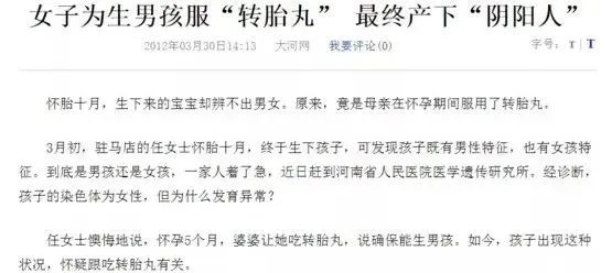 这一切都源自对生男孩的执念,对生育基本原理的无知,对转胎药的迷信,对“双性人”的忽视……