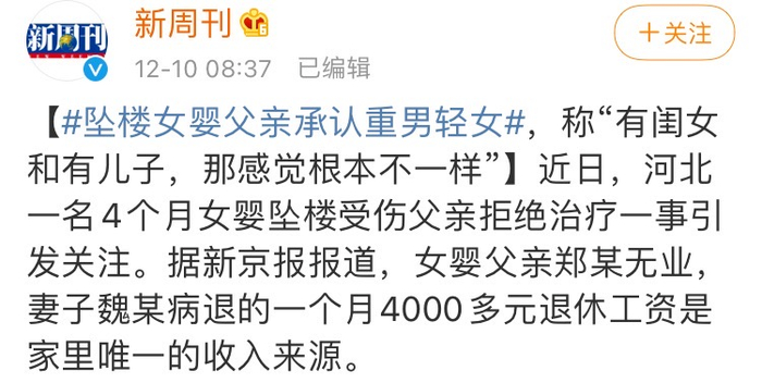 因为我们都知道,在这场全网“接男宝”的闹剧背后,藏着的其实是隐而不宣的恶疾——重男轻女。