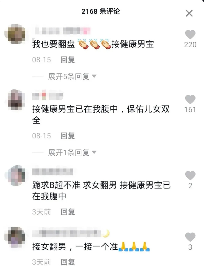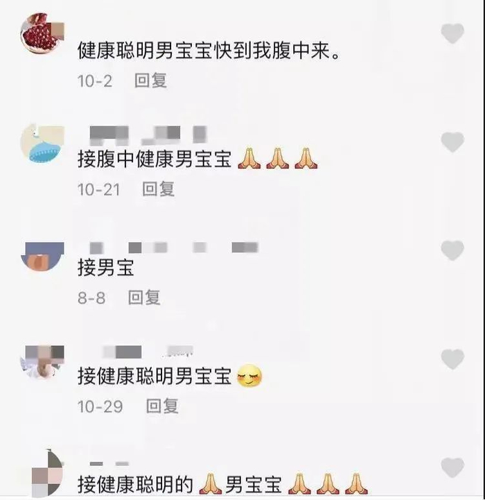 更魔幻的是,那些检测出怀了女孩的孕妈,还会在底下留言“求翻盘”,希望肚中的女孩能变成男孩。