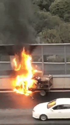 湘府路高架三轮摩托自燃!活鸭变“烤鸭”,鸡蛋也熟了(视频)