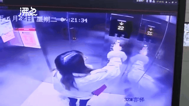 只见女子迅速按下数排楼层按钮,在电梯停在12楼时立即离开。