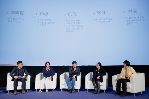 人文艺术组的五位专家从各自的专业角度讨论对于儿童美育的看法。中华世纪坛艺术馆执行馆长冀鹏程叙述蔡元培的“美感教育”的具体要点,杨忠老师指出需要把美育、文化转换成孩子喜欢读的绘本,这其中编辑的角色十分重要。北京大学杭侃教授分享了自己由于阅读绘本《小蓝和小黄》而认识到绘本并不是一种简单的幼儿读物,创作难度其实非常高。他认为对于一个孩子来说,“有趣是更重要的”,从此对于绘本的创作很有热情和兴趣。科普作家协会旅游科普创作专委会副主任刘莹也表示博物教育就是让孩子认识到大自然的动物、植物其实十分有趣,在感情和体验中得到成长。中央美术学院设计学院副教授张凡同时也是著名首饰设计师,展示了如何从《千里江山图》和敦煌壁画中获得灵感创作出一件首饰。