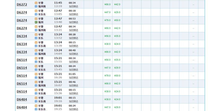 平潭到福州南5对,最快运行时间30分钟