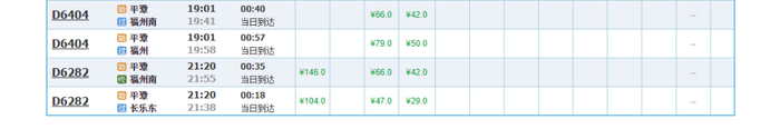 平潭到赣州1对,全线运行时间6小时