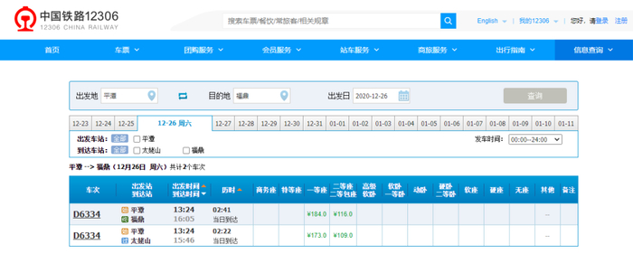 平潭到北京1对,全程运行时间12小时