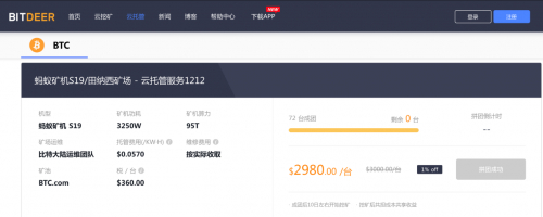 今年2月,比特大陆宣布即将发布备受瞩目的新机型蚂蚁矿机S19 PRO&S19,紧接着在3月10日比特小鹿就作为全球首发上线了S19系列的挖矿套餐。