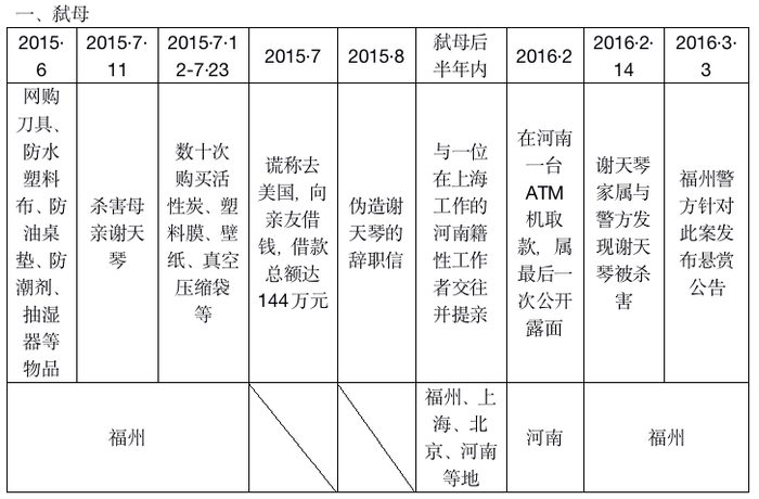 逃跑之前,吴谢宇利用母亲日记中的字迹精心伪造了母亲的辞职信,并操办了母亲的辞职宴会,让熟悉的人误认为谢天琴已经跟随北大毕业的儿子吴谢宇前往美国陪读。而他曾经通过网络购买的手术刀、菜刀甚至手机贴膜刀等,以及为防止尸体腐败气味太大所使用的活性炭、塑料薄膜等,都传达出这是一场精心筹划的谋杀。