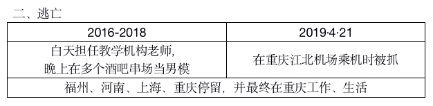 其中的两年多时间内,吴谢宇隐姓埋名,白天当老师,晚上在重庆一家夜间娱乐场所当男模,而这种娱乐场所对男模的要求是“能说会道,性格温柔”,他对外自称姓张,化名“小龙”。