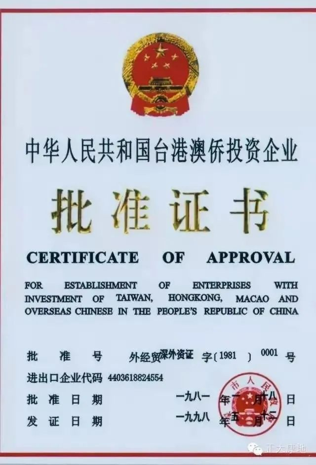 1979年,中国颁发了《中外合资经营企业法》,第一时间,现任正大集团资深董事长的谢国民先生便带领首批先遣人员,从泰国取道香港来到深圳,投资3000万美元设立了中国第一家在华投资的外商企业——正大康地深圳有限公司,获得深圳市0001号外资企业批准证书,正大集团由此开启“中国之旅”。
