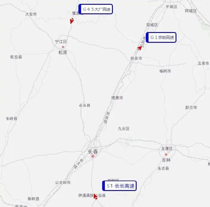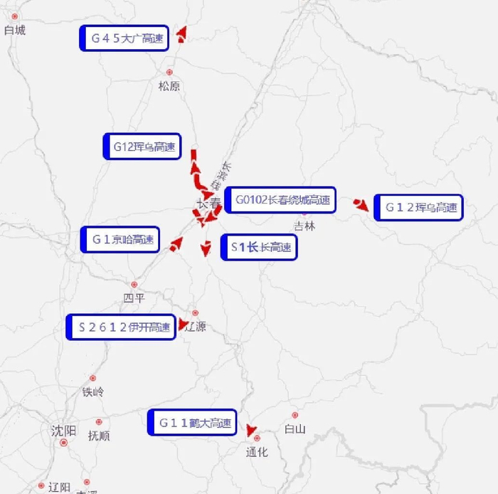 节日期间,吉林省返程易拥堵缓行的高速主要是G45大广高速、S1长长高速、G1京哈高速的部分路段。