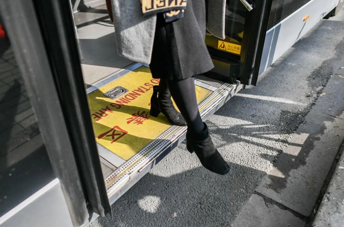 61路和99路较早换用纯电动车型,周红英感觉“非常安静、方便”。从进出站到行车途中,几乎听不到噪声。上车台阶只有一级,地板高度比柴油车低;遇到行动不便的乘客,驾驶员会主动开启“侧身”功能——车身向车门方向稍稍倾斜,台阶高度继续降低,轻轻抬步便走进车厢;中门旁地板还可以翻折,坐轮椅的乘客不用起身就能上车。