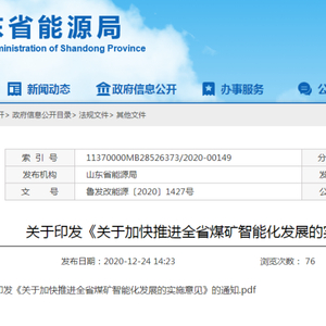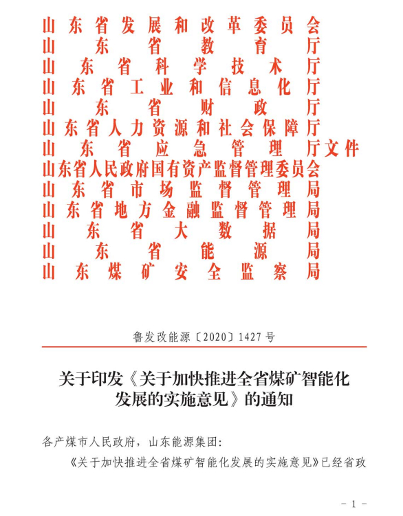 近日,山东省发改委、山东省应急管理厅、山东省能源局等13部门联合发布《关于加快推进全省煤矿智能化发展的实施意见》。