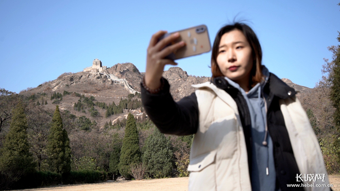 正在角山长城上自拍的是一名“00后”大学生,赵宛璐,一个地地道道的河北秦皇岛人,爱好是保护长城。