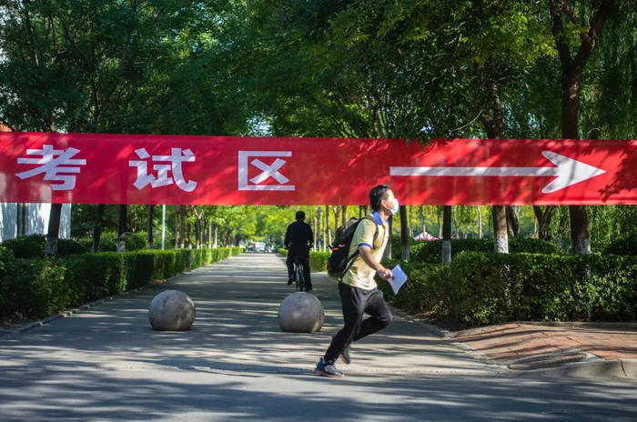 2020年9月19日,山东滨州,赶往英语四六级考试考场的考生