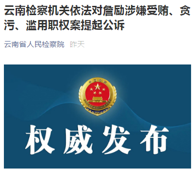 云南检察机关依法对詹励涉嫌受贿、贪污、滥用职权案提起公诉
