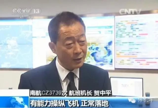 贺中平后来接受采访时说,乘客听到的那番淡定播报并非他本人发声所说,而是他把这番话告诉副驾驶进行广播,“当时我的确有这个信心,从故障信息看,飞机可以顺利飞抵广州,如果保持这样的状况,可以安全降落。但说完全不紧张不现实,作为机长,从起飞到离开舱门,都不可能放松,落地后也可能出现意外,但我必须给乘客信心。”至于“最美机长”的称呼,这位曾开了15年轰炸机、有着35年驾驶经验的陕北汉子当时有些腼腆地说:“这主要是我们团队合作的结果,包括所有的机组和空乘人员还有地面的空管人员,一个环节出问题都不可能安全。我更希望把对我的表扬看作是对我们团队的表扬。管我叫‘最美机长’,我很忐忑。”