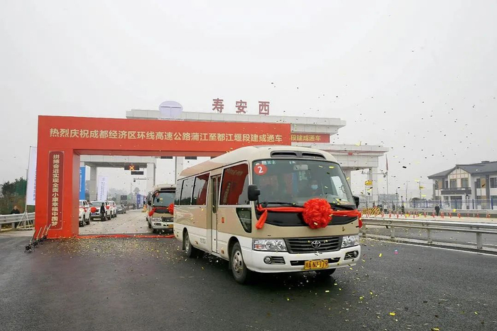 12月25日,成都经济区环线高速公路(也称“成都三绕”)蒲江至都江堰段(简称“蒲都高速”或“成都三绕西段”)通车仪式在蒲江县境内寿安西收费站举行。依照省交通运输厅批复,该高速公路将于2020年12月31日24时开通试运营,试运营期间车辆免费通行。