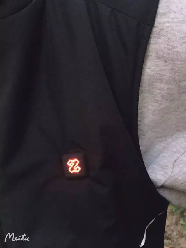 马甲左胸上黑色凸起的Logo就是开关键,方便随时调控,一目了然;