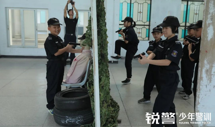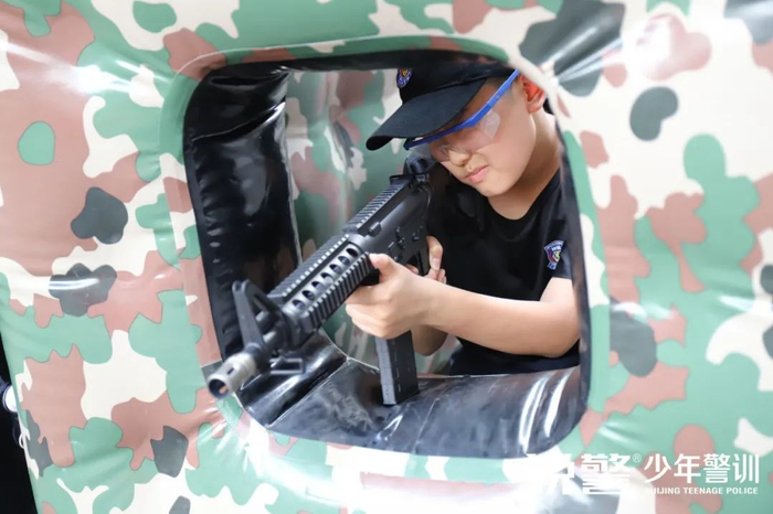 课程涵盖了战术手语、高空缓降、掩体作战、持枪射击等内容,孩子们在教官的监护下及沉浸式教学环境中尽情体验摸爬滚打、瞄准射击、模拟出警、徒手攀岩、案发现场、战术小队等项目,深度学习警务实战要领。