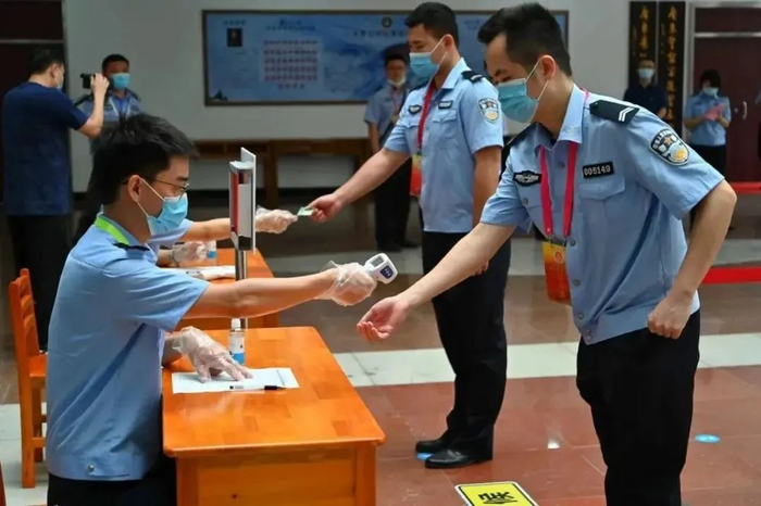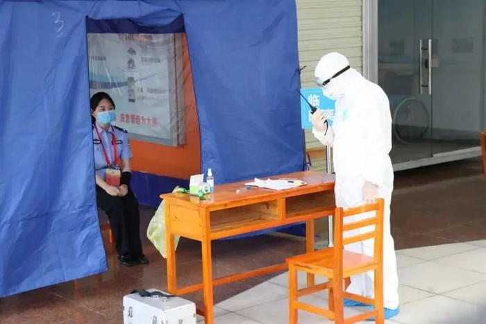 每营同省出发,绿码出行。队员报到需备好健康报告、健康情况承诺书,排队期间,消毒工作人员对行李进行消毒。