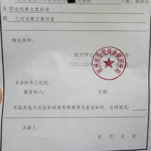 昨天吴去良渚派出所拿到了杭州市公安局余杭分局发出的立案告知书,通知书上的内容是:“浙江省杭州市余杭区谷**被诽谤一案,我局认为符合刑事立案标准,现已对该案立案侦查”。(吴为化名)