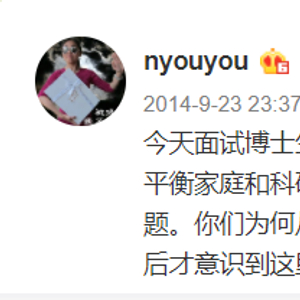 有人在我微博上提问:我现在做博后,既怕生孩子影响科研工作,又怕年龄大了再生面临健康问题。对这种困惑,诸位有什么建议或经历可以分享?