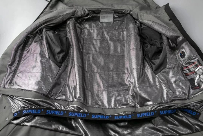 内部整片银巢反射内里,能有效地反射人体辐射的红外线与热量,减少在寒冷条件下人体热量的流失。
