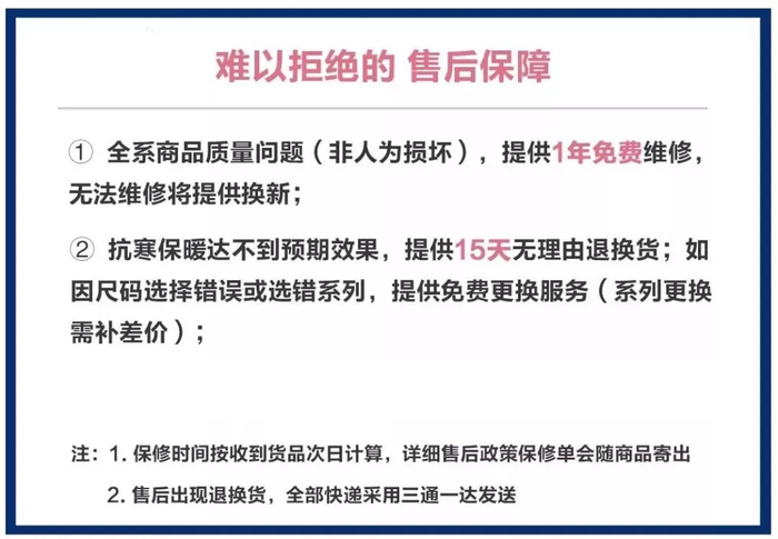 我们为了给大家带来更好的体验感受,和素湃联合做出以下颠覆式售后服务,打消购买中的一切顾虑: