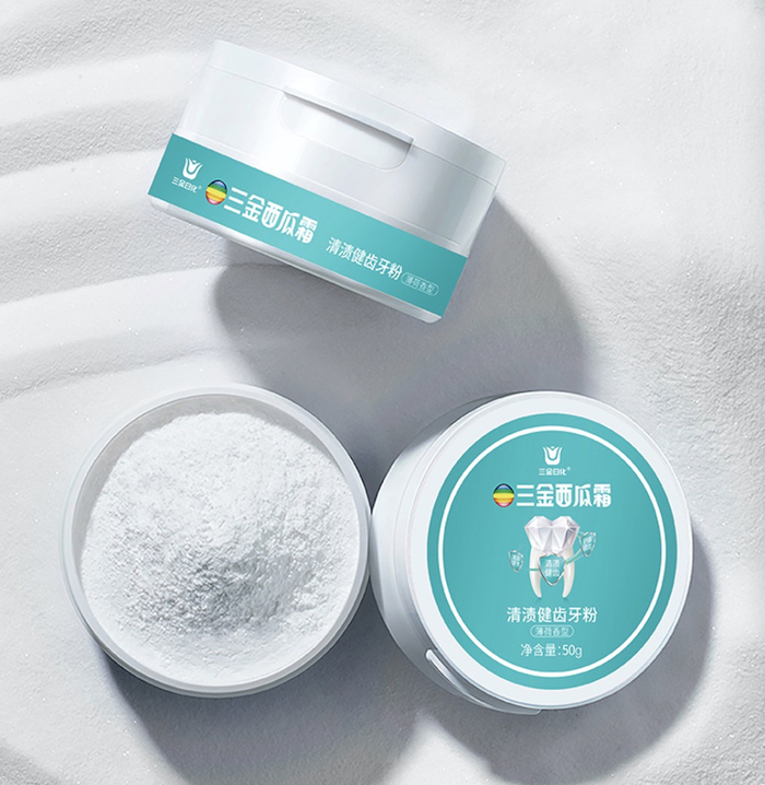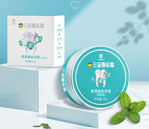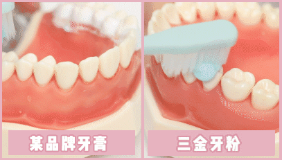 相比一般的牙粉,三金采用了千目的珍珠粉,质地非常细腻、柔软,没有颗粒感。