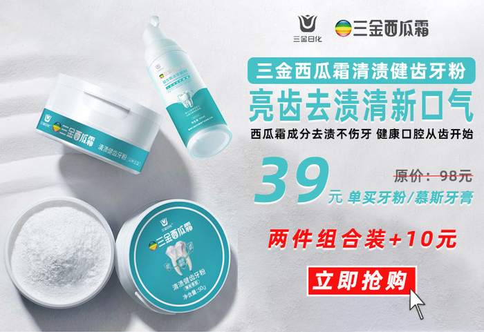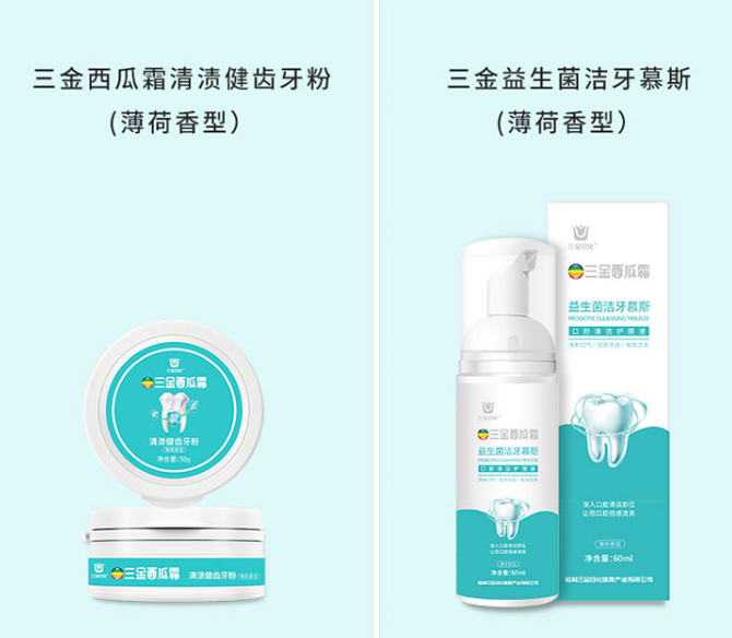 现在,三金把西瓜霜做进了牙膏,牙粉里,