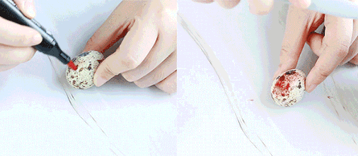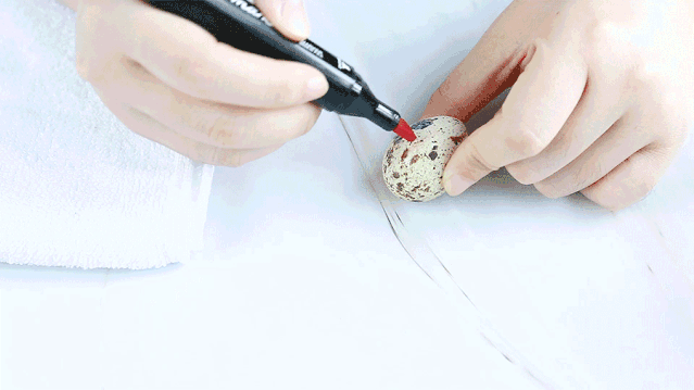 用马克笔在鸡蛋表面涂鸦模拟牙垢