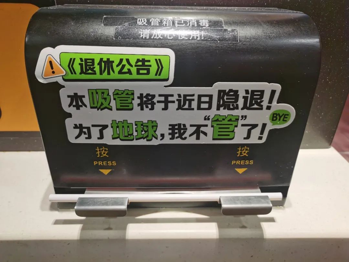 “本‘吸管’将于近日隐退!为了‘地球’,我不‘管’了!”这是一家即将禁用吸管的麦当劳餐厅在吸管自取处贴出的公告。根据南宁市发展和改革委员会及南宁市生态环境局联合印发实施的《南宁市进一步加强塑料污染治理工作分工方案》,到2020年底,南宁市范围餐饮行业将禁止使用不可降解一次性塑料吸管。
