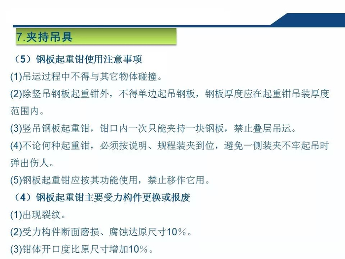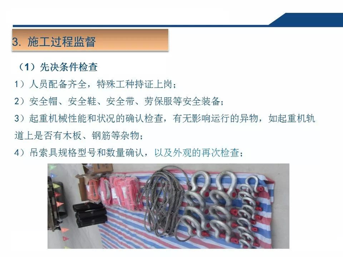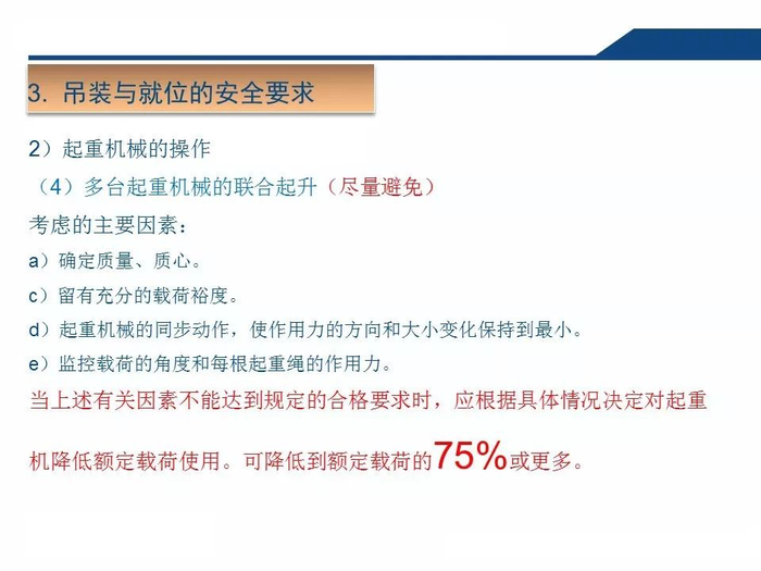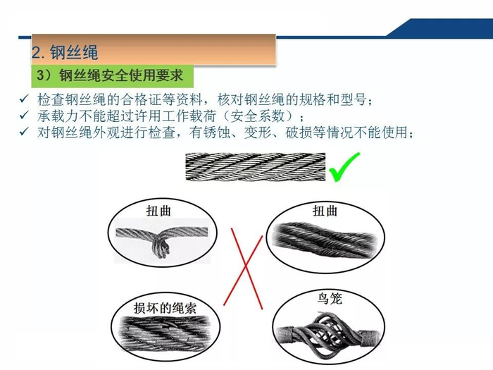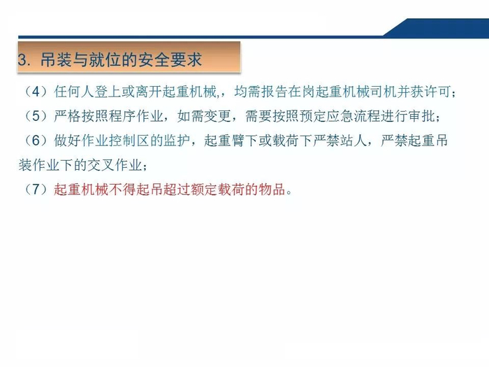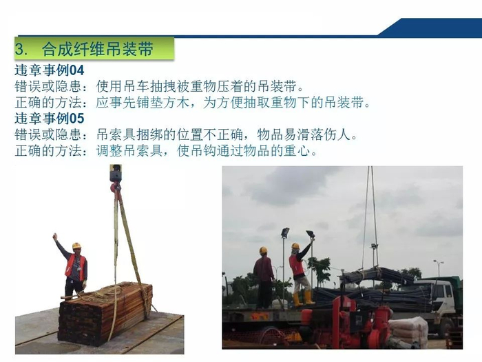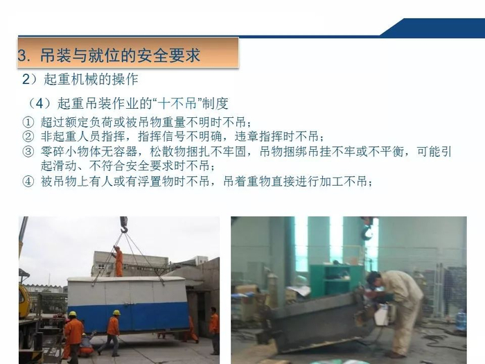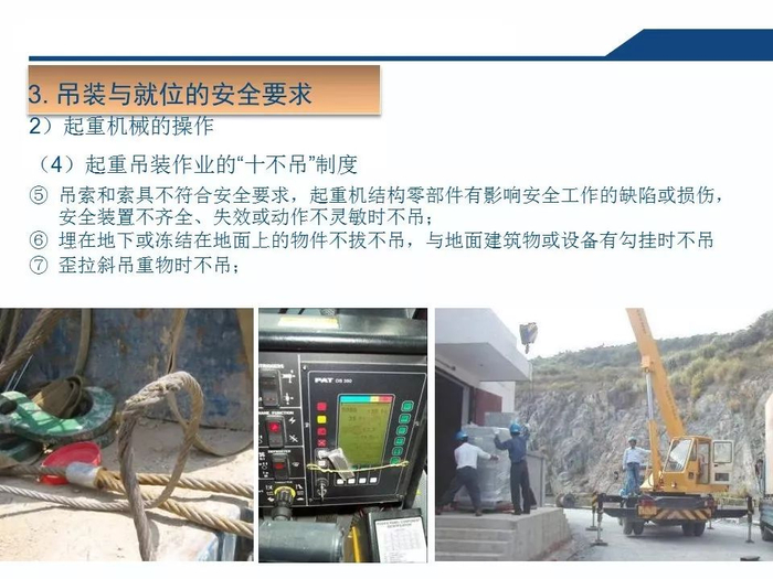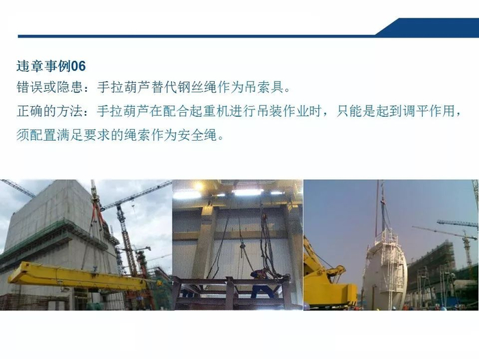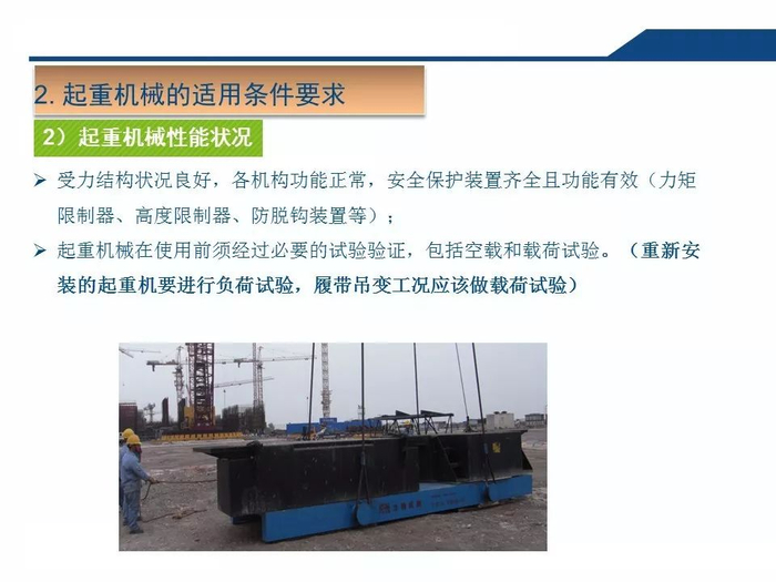 2.正确认知吊索具安全系数吊装作业中,工作人员无吊索具安全系数的正确认知,往往以不断为使用的依据,致使超重作业总是处在危险状态。3.拆除作业中一定要对遭遇的各种因素有预见性