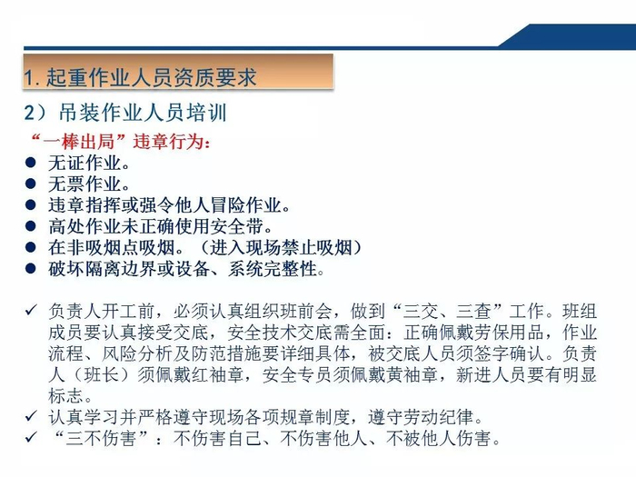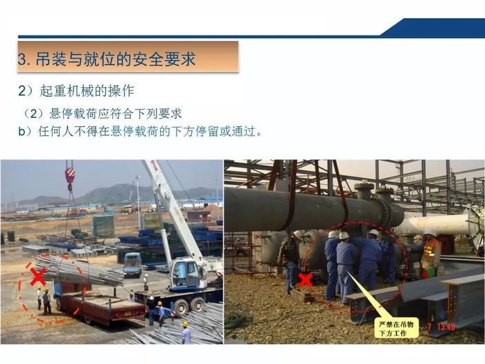 同时,人员严禁站在吊物下面,这是基本要求!即使吊物坠落,只要人员不在下面,至少也可以避免伤亡事故!