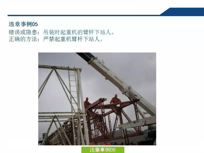 吊装作业与很多施工不一样,涉及面大,经常使用不同单位、不同类型的吊车。日常操作习惯、性能、指挥信号的差异等因素很容易引发误操作,所以要特别谨慎。