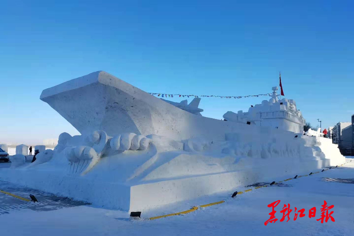 12月27日,由玺瑞集团出资、哈尔滨市道外区城管局精心设计制作的巨型“航空母舰”“城堡滑梯”“驱逐舰”等多处雪雕景观建设完成,给广大市民及游客再添一处网红打卡地。
