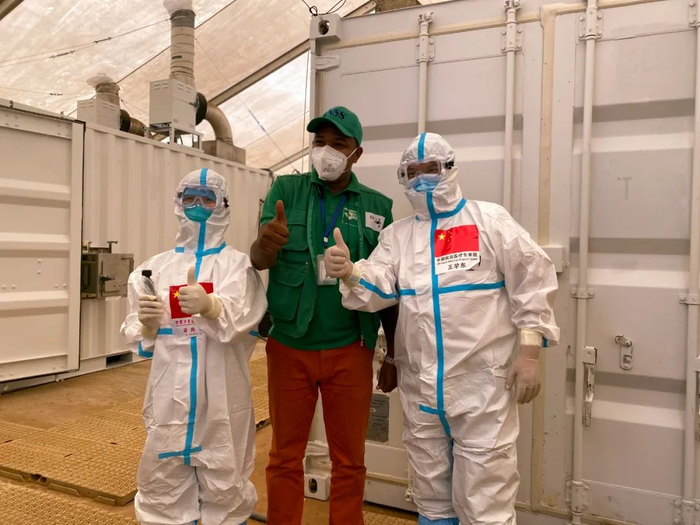 ▲2020年9月2日,在几内亚首都科纳克里一个核酸检测取样点,中国抗疫医疗专家组成员与当地工作人员合影。新华社发(专家组供图)