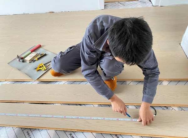 在整个安装过程中,天格安装工程师展现出了极高素养与专业度。易女士表示,在安装前,安装工程师会用吸尘器将整个室内地面进行彻底的卫生清洁,而在安装过程中,首先安装工程师会进行整体的试铺,并根据她的需求将产品根据颜色和花纹进行统一调整,把有差别的部分铺到床下或者边角放家具的地方;其次,在正式铺装环节,为了保证安装现场整洁,安装工程师还会把地板的无尘切割过程一律放在同一区域,且每次切割完后都会立刻清扫整理,将切割废料放在自制的垃圾箱内;再者,在地板切割前,他们还会对每一数据进行反复测量确认,以保证安装品质万无一失,也能尽可能减少损耗;最后,当地板铺好后还会清理整顿,现场不会留有任何木屑、碎片等垃圾。