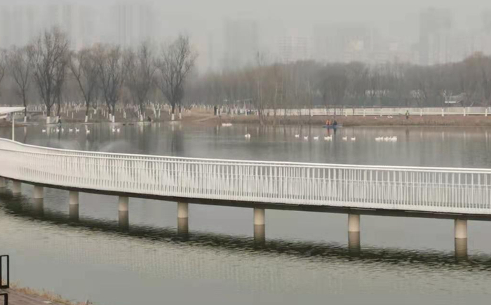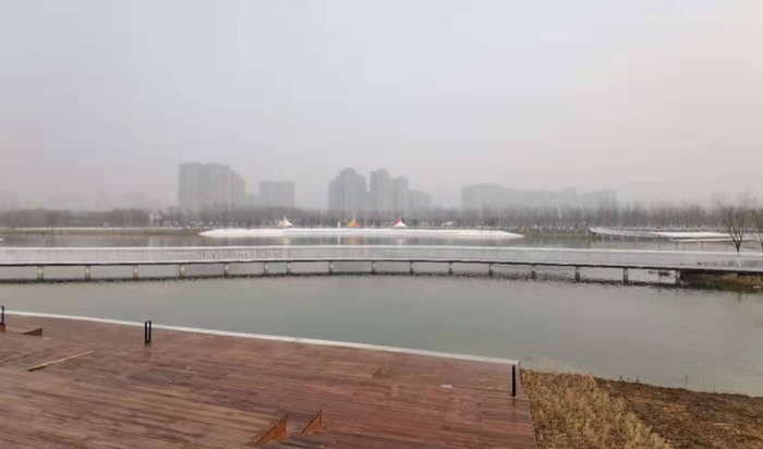 冬日的樊川公园里,潏河水静静流淌,湖面上不时有水鸟掠过。12月28日,在全域治水·樊川段(潏河治理)建设项目现场,公园二期已进行工程扫尾,计划2021年2月底建成开放。